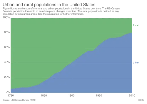 - ^ "Chapter 2. Urban, Rural, and Farm Population, and Large Cities". American Demographic History Chartbook: 1790 to 2010. 23 September 2015. Retrieved 5 October 2024.