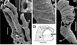 - ^ a b c Budd, G.E.; Jensen, S. (2000). "A critical reappraisal of the fossil record of the bilaterian phyla". Biological Reviews. 75 (2): 253–295. doi:10.1111/j.1469-185X.1999.tb00046.x. PMID 10881389. S2CID 39772232.