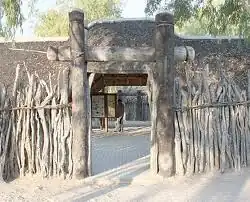 Uukwaluudhi is a traditional kingdom of the Ovambo people in what is today northern Namibia. Its capital is Tsandi, a settlement located about 30 km south of Outapi, and the location of the Uukwaluudhi Royal Homestead. The homestead is situated about 2 km past Tsandi towards the town of Okahao. Half of it is of modern structure where the Kwaluudhi king and queen reside, while the other half is left in traditional Owambo style. The King now lives in a modern house, but the old residence complex has been kept to keep the homestead live, learn more about people's culture, traditions and history. When a homestead with modern brick-buildings was constructed next to the traditional homestead in 1978, the king and his family moved over, to allow visitors access the former royal home. Guided tours takes approximately 1.5 hours which starts at the front yard of the homestead, used as a reception area for people visiting the kingdom. [1]