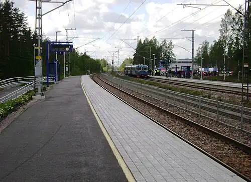 Uusikylä, along with Villähde, were subsequently rebuilt and reopened on 12 December 2010, which made Nastola home to a total of three active railway stations.[7] The platforms of the new station were placed approximately 1.2 kilometres (0.75 mi) further west compared to the old ones, in the approximate location of the Kanerva halt that was in use in 1954-1969.[4]