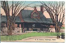 Uxbridge station is a former railroad station in Uxbridge, Massachusetts. Built in 1895, it is a well preserved example of Queen Anne architecture. On October 7, 1983, it was added to the National Register of Historic Places as Uxbridge Passenger Depot. It served as a significant transportation hub and the town's main passenger station for more than 50 years.