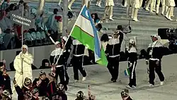 Uzbekistan became an independent country in 1991 following the dissolution of the Soviet Union, and competed with the Unified Team made up of several former Soviet Republics during the 1992 Winter and Summer Olympics.[1] The National Olympic Committee of the Republic of Uzbekistan was recognized by the International Olympic Committee in 1993, and beginning with the 1994 Winter Olympics Uzbekistan began competing as an independent country.[2] The country has participated in every Olympics, Summer and Winter, since 1994.[3] The only Uzbekistani Winter Olympics medal was won by Lina Cheryazova, a freestyle skier, in 1994 in Lillehammer, Norway.[3] The delegation sent to Vancouver in 2010 consisted of three competitors; two alpine skiers, Kseniya Grigoreva and Oleg Shamaev, and one figure skater, Anastasia Gimazetdinova.[4] Shamaev was chosen as the flag bearer for both the opening ceremony and the closing ceremony.[5][6]
