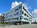 Malmö University (by then a university) has been established on Universitetsholmen, with the Teacher training college's new building, Orkanen at Hjälmarekajen. ProCivitas Private Gymnasium is also located on Universitetsholmen. Around the City Tunnel station is the university's main building, which used to be the harbor office, as well as the Sjömanskyrkan church and the old pilot office at Bagers plats. The Universitetsholmen Upper Secondary School is actually located just west of Universitetsholmen.