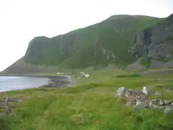 An 840 hectares (2,100 acres) area consisting of vertical cliffs and steep grassy slopes on the south-west peninsula of the island, along with the Måstadfjellet nature reserve and adjacent marine waters, has been designated an Important Bird Area (IBA) by BirdLife International because it supports large breeding colonies of about 40,000 pairs of Atlantic puffins and 15,000 to 20,000 pairs of black-legged kittiwakes.[4]