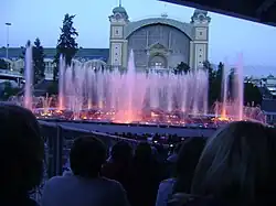 Křižík's fountain (Czech: Křižíkova fontána), or Křižík's light fountain, is an illuminated and musical fountain used for cultural events. The fountain was built by František Křižík in 1891 on the occasion of the World Exhibition. The Fountain was rebuilt in the 1920s by architect Z.Stašek. The bottom of the fountain plate is equipped with 1,300 multicolored reflectors and water circuits composed of more than 2 kilometers of pipes with almost 3,000 nozzles. Now it is amplified by the classical and pop music and other art projects.[3] In 2017-2021, the fountain was closed for reconstruction.