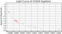V1059 Sagittarii (also called Nova Sagittarii 1898) was a nova, which lit up in 1898[4] in the constellation Sagittarius. The star reached apparent magnitude 4.5, making it easily visible to the naked eye. It was discovered on 8 March 1898, by Williamina Fleming on a photographic plate taken at the Harvard College Observatory.[5] The discovery plate was an objective prism plate, part of the Henry Draper Memorial Photographs,[6] and Ms Fleming identified it as a nova based on its spectral characteristics.[7]