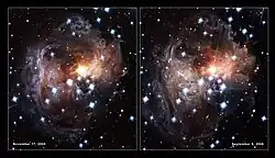 - ^ "Hubble Watches Light from Mysterious Erupting Star Reverberate Through Space". Hubblesite. Mar 26, 2003. Archived from the original on December 22, 2017.