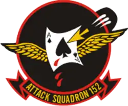 VA-152 was an Attack Squadron of the United States Navy, nicknamed the Fighting Aces from 1953 to 1956, the Friendly Squadron or Friendlies from 1957 to 1968, and the Mavericks thereafter.