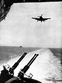 - 25 January 1949: Cross deck operations with the British carrier HMS Triumph in the Mediterranean.