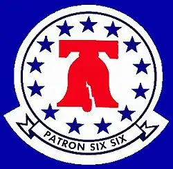VP-66 was a patrol squadron of the U.S. Navy Reserve. The squadron was established on 1 November 1970 at NAS Willow Grove, Pennsylvania, where it was based for the rest of its life. It was disestablished on 31 March 2006, after 25 years of service. The squadron's nicknames were the Flying Sixes from 1971 to 1974, the Dicemen from 1975 to 1980, and the Liberty Bells from 1981 onward. Elements of the squadron made 19 major overseas deployments.[1][2]