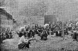 In the traditional Wa society monogamous marriage was the norm and there was sexual freedom for both men and women before marriage. The chewing of betel with areca nut was formerly also an important custom.[9] The Wa have different kinds of traditional dances. One important dance in their culture is accompanied by the beating of a large hollow wooden drum. This way of dancing, among other Wa dances[10] such as the hair dance[11] and festivals,[12] is being promoted as a tourist attraction by the Yunnan tourism authorities in China.[13] The Wa Women's Association also promotes dance, as well as other cultural and philanthropic activities.[14]