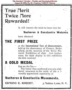 - ^ "EWC: History of Vacheron Constantin". www.europeanwatch.com. Retrieved 2 January 2019.