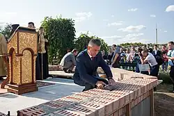 While still being the head of the Ministry of Internal Affairs, Vadim Krasnoselsky initiated the installation of banners featuring the image of the imperial family with the words: "Forgive us, sovereign, for our lost children."[39] He initiated the construction of a chapel in honor of the imperial family of Nicholas II[40] in Bender and a chapel on the site of the former Intercession Church in Tiraspol which was demolished in the Soviet era.[41] He also sharply criticized the religious policy of the USSR.[42]