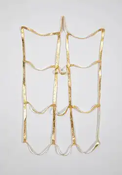 "At various times times throughout human history, drinking gold was a relatively common practice for those seeking eternal youth. Artist Vadis Turner uses this misguided tradition and several stories of mythological, historical and literary female outcasts as a loose conceptual foundation for her AEIVA exhibition, She Drank Gold....Turner references historical notions of female hysteria and ostracism, the expressive formalism of the grid in art, and the physical properties of metal."[10]