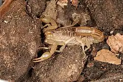 Vaejovidae is a family of scorpions,[1] currently comprising 25 genera and over 230 species,[2] found in North America. The species of the family are found from western Guatemala, throughout Mexico, and in the United States, mostly west of the 100° meridian and one species in the Appalachian Mountains. Small, montane species of the genus Vaejovis have been found in pine and spruce forests at elevations over 9,500 feet (2900 m) in New Mexico and Arizona. The northern scorpion, Paruroctonus boreus, is found from northern Arizona to the southern plains of Saskatchewan, Alberta, and British Columbia in Canada and is the northernmost known species of scorpion in the world.[3]