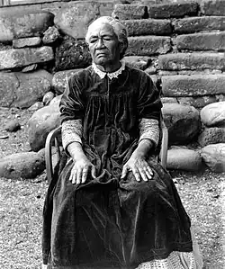 With the Nuka Hiva culture collapsing due to the ongoing deaths and the influence of the French,[2] Vaekehu retreated to the mission compound and devoted herself to religion. She continued to receive European visitors, who spoke of her growing family with several adopted members. These included Robert Louis Stevenson, Pierre Loti and Karl von den Steinen. Although they spoke of her great dignity, they also said that she would enjoy telling stories, claiming to have eaten her first husband. She spent her time with Catholic nuns, and refused to engage with the traditions of the old religion of the island referring to them as pagan in nature.[1]