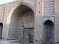 Vakil caravanserai consists of two floors and has 120 rooms. The number of rooms is on the first floor to 81 and on the second floor to 31.Caravanserai has two doors opening to Vakil market(Bazar-i Vakil).[3] The entrance facade to Vakil caravanserai, which opens into the market is decorated with tiles. This is the same from outside porch. One of the most valuable features of this caravanserai is its windshield Which has its own reputation and beauty. Another historical attraction is the clock tower which has a long history how it got to Iran.[4]