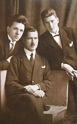 Valdemārs Ozoliņš was born November 5, 1896, in Vestiena, in the Governorate of Livonia (present-day Latvia). His parents were farmers. He attended school in Vestiena, enrolled the conservatory of St Petersburg 1914, later in Moscow, and in 1921 the composition and conducting classes of the conservatory in Riga, Latvia, which he graduated in 1931. In Riga he was the substitute of the conductor Teodors Reiters. Valdemārs Ozoliņš song “Papardes zieds” – "The fern flower" (text by K. Krūza) was received very well at the VI Latvian Song Festival in Riga in 1926. He obtained the master's degree in music from the Chicago conservatory, US. Valdemārs Ozoliņš was honoured by the Latvian Culture fund for his solo and choir songs in 1926. He had some involvement with the Baltic neopagan movement Dievturība, where he was the first conductor of the dievturi choir.[1]