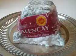 Valençay (French pronunciation: [valɑ̃sɛ] ⓘ) is a cheese made in the historic province of Berry in central France. Its name is derived from the town of Valençay in the Indre department.