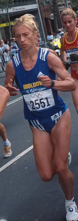 Enachi came fifth at the 2000 Paris Marathon and her time of 2:33:28 hours qualified her to compete at the 2000 Sydney Olympics.[18] She ran in her second Olympic marathon race but she didn't manage to finish the distance.[19] Following her appearance on the Olympic stage she had back-to-back wins at the La Rochelle Marathon in 2001 and 2002.[20] She also won the 2001 Murtenlauf and in 2002 she topped the podium at the Cannes Half Marathon and Marathon du Mont Saint-Michel (setting a career best of 2:30:06 hours at the latter competition).[21][22]