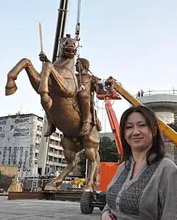 Valentina Karanfilova-Stevanovska (Macedonian: Валентина Каранфилова-Стевановска; born 30 April 1969) is a Macedonian sculptor mainly known for her art works for the Skopje 2014 project. She is the author of a few iconic landmarks in the capital city of North Macedonia, including the Fountain of Alexander the Great, Porta Macedonia and the Fountain of Philip II of Macedon. Stevanovska has also participated in numerous domestic and international exhibitions and has received multiple awards.[1][2]
