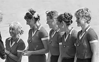 ![]() Soviet coxed four at the 1964 European Championships, Timofeyeva is first from left | ||||||||||||||||||||||||||||||