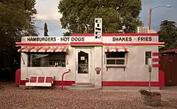 In 1947, manufacturing was taken over by the Valentine Manufacturing Company.[3] After World War II and the implementation of the Interstate Highway System in the U.S. in the late 1950s, prefabricated diners saw a boom in business as motorists took to the roads in greater numbers for longer journeys and would stop for a meal.[4] Valentine Diners were produced until the 1970s, and several survive as operating business (sometimes as a restaurant, sometimes as other businesses) around the United States today. A few have become historical roadside attractions, such as along historic Route 66.[5]