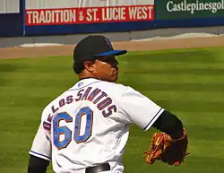 On April 13, 2005, De los Santos signed with the Florida Marlins. On July 9, 2005, pitching in the 9th inning against the Chicago Cubs, de los Santos hit Adam Greenberg directly in the back of his head with a 92 mph fastball on the very first pitch of the plate appearance. "The first thing going through your mind is, 'This guy's dead,'" de los Santos said. Greenberg suffered a traumatic brain injury and major skull fracture as a result of the beaning, and still suffers from positional vertigo. In 2005, he pitched to a 6.14 ERA over 27 games for the Marlins. He was released by the Marlins on August 13, 2005.