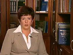 In April 2012, the Verkhovna Rada appointed Lutkovska to the position of the Ukrainian Parliament Commissioner for Human Rights.[4][5] She assumed office on 27 April 2012, taking her oath at the plenary session of the Verkhovna Rada.[3] Her term ended on 28 April 2017.[1] In March 2018 Lutkovska was succeeded as Commissioner by Lyudmyla Denisova.[6]