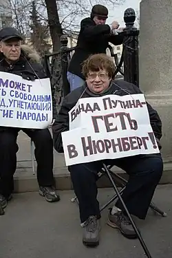 Novodvorskaya strongly opposed the Second Chechen War and Vladimir Putin's domestic and foreign policies.[29][30]