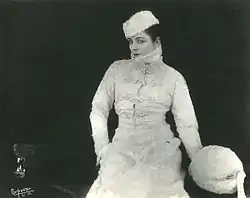 Suratt began her career as an actress on the Chicago stage. Around 1900, she began appearing in vaudeville. She soon paired with performer Billy Gould (whom she later married) and the two created a successful act that included a so-called Apache dance performed by Suratt. In 1906, she made her Broadway debut in the musical The Belle of Mayfair, followed by a role in Hip! Hip! Hooray! the following year. By 1908, Suratt and Gould had parted ways and Suratt began a successful solo act which featured her singing and dancing while wearing glamorous costumes and gowns. Suratt's success in vaudeville continued and she began billing herself as "Vaudeville's Greatest Star" and "The Biggest Drawing Card in New York".[4] In 1910, she appeared in the show The Girl with the Whooping Cough. New York City mayor William Jay Gaynor claimed that the show was "salacious" and had it shut down because of its sexually suggestive themes.[5] In December 1910, she teamed up with Fletcher Norton (who became her second husband) in a play titled Bouffe Variety. She became noted for appearing in playlets where she played a variety of roles in comedies and melodramas.[4]