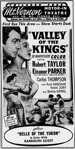 - ^ Pryor, Thomas (September 27, 1952). "NEW METRO MOVIE TO BE SET IN EGYPT: Studio's 'Valley of the Kings' Is Third Hollywood Picture Using That Background". New York Times. p. 13.