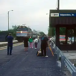 - ^ "First Train–And It's 40 Minutes Late". Vidette-Messenger of Porter County. Valparaiso, Indiana. April 26, 1976. p. 11. Retrieved October 22, 2019 – via Newspapers.com.