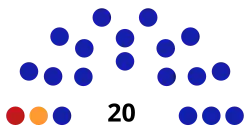 The newly formed Council of Deputies includes 25 persons, with 12 of them elected in twelve single-mandate constituencies, while 13 are elected in a single electoral district.[20] Among other things, the Council approves the local budget, manages state property, can establish and cancel local taxes and fees, assigns names to streets, and maintains the road network in the territory allocated to it.[21] It also has the right to create museums, higher educational institutions and create the necessary conditions for the national and cultural autonomies of the district.[22]
