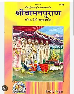The Vamana Purana (Sanskrit: वामन पुराण, IAST: Vāmana Purāṇa), is an ancient Sanskrit text that is at least 1,000 years old and is one of the eighteen major Puranas of Hinduism.[1] The text is named after one of the incarnations of Vishnu and probably was a Vaishnava text in its origin.[1] However, the modern surviving manuscripts of Vamana Purana are more strongly centered on Shiva, while containing chapters that revere Vishnu and other Hindu gods and goddesses.[2][3] It is considered a Shaiva text.[1][4] Further, the text hardly has the character of a Purana,[3] and is predominantly a collection of Mahatmyas (travel guides)[5][a] to many Shiva-related places in India with legends and mythology woven in.[6]