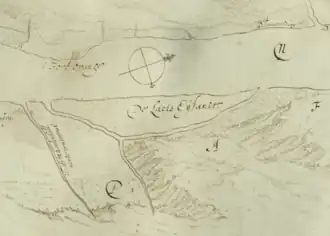 The island went through many name changes in the 400 years since Henry Hudson saw it when he was at the present-day site of Albany. The name Kalebacker's Island may be related to the Dutch term "kale backer", translated into English it means down-and-outer, or mean fellow;[4] the term Kalebacker was the term used by the Dutch for Native Americans who possessed guns, and were regarded as troublesome and war-like.[5] There was a settlement of Native Americans who moved to the island after the Dutch established Fort Orange across the Hudson from the island,[1] they apparently moved there in order to trade with the Dutch, they had a fort, village, and crop fields. The site is listed in the New York State Office of Parks, Recreation and Historic Preservation archaeological files, but not within the New York State Museum site files.[1] The name De Laets Eylandt (de Laet's Island in English) was in honor of Joannes de Laet, given in the 1630s by Kiliaen van Rensselaer, the first Patroon of the Rensselaerswyck, a feudal estate encompassing Albany and Rensselaer counties.[6] On May 1, 1658 Jan Baptist van Rensselaer, the director of the patroonship leased to Arent Adriessen all the tilled land on the island, which was referred to as "the island opposite the center of the village of Beverwyck".[7] The lease was set for four years.[8]