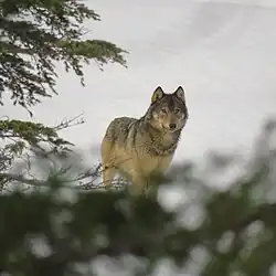 The Vancouver Island wolf is recognized as a subspecies of Canis lupus in the taxonomic authority Mammal Species of the World (2005).[16] Studies using mitochondrial DNA have indicated that the wolves of coastal southeast Alaska are genetically distinct from inland grey wolves, reflecting a pattern also observed in other taxa.[17][18][19] They show a phylogenetic relationship with extirpated wolves from the south (Oklahoma), indicating that these wolves are the last remains of a once widespread group that has been largely extirpated during the last century and that the wolves of northern North America had originally expanded from southern refuges below the Wisconsin glaciation after the ice had melted at the end of the Last Glacial Maximum. These findings call into question the taxonomic classification of C.l. nulibus proposed by Nowak.[18] Another study found that the wolves of coastal British Columbia were genetically and ecologically distinct from the inland wolves, including other wolves from inland British Columbia.[20] A study of the three coastal wolves indicated a close phylogenetic relationship across regions that are geographically and ecologically contiguous, and the study proposed that Canis lupus ligoni (Alexander Archipelago wolf), Canis lupus columbianus (British Columbia wolf), and Canis lupus crassodon (Vancouver Island wolf) should be recognized as a single subspecies of Canis lupus.[19]