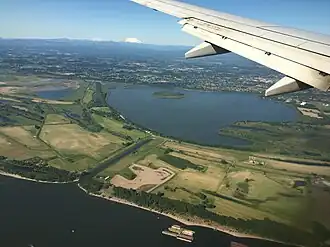 ![]() An aerial view of the lake (with the Columbia River in the foreground) | |