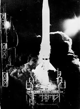 - ^ Winter, Frank H. (1990). "Chapter 3 — Rockets Enter the Space Age". Rockets Into Space. Harvard University Press. p. 66. Retrieved 24 June 2015.