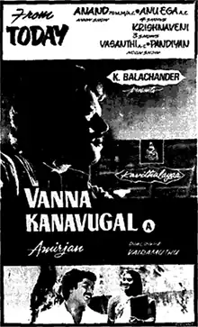 Vanna Kanavugal (transl. Colourful Dreams) is a 1987 Indian Tamil-language film directed by Ameerjan and produced by Kavithalayaa Productions. The film stars Karthik, Murali, and Jayashree. It is a remake of the 1984 Malayalam film Adiyozhukkukal.[1][2] The film, which notably features no songs,[3] was released on 9 July 1987 and became a success.