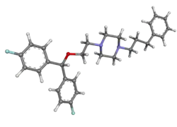 - ^ Matecka D, Rothman RB, Radesca L, de Costa BR, Dersch CM, Partilla JS, et al. (November 1996). "Development of novel, potent, and selective dopamine reuptake inhibitors through alteration of the piperazine ring of 1-[2-(diphenylmethoxy)ethyl]-and 1-[2-[bis(4-fluorophenyl)methoxy]ethyl]-4-(3-phenylpropyl)piperazines (GBR 12935 and GBR 12909)". Journal of Medicinal Chemistry. 39 (24): 4704–4716. doi:10.1021/jm960305h. PMID 8941383.