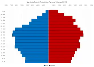 According to the 2011 census, Varaždin County has a population of 175,951.[4] Ethnic Croats make up a majority with 97.9% of the population.[5]