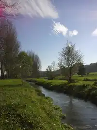 The river's source is just northwest of Buchy near to Montérolier, Its valley separates the pays de Caux on the west bank from the pays de Bray to the east.