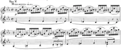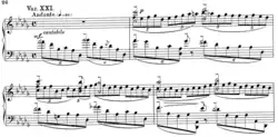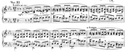 | XXI | Andante (60 bpm) - Più vivo (100 bpm) | D♭ major C major | 24 bars in D♭ major followed by 29 bars of 3 4 in C major marked Più vivo (100 bpm) |