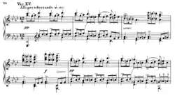 | XV | Allegro scherzando (132 bpm) | F minor | 45 bars of 12 8 in F minor |
