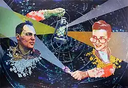 The artist duo deals with socially prominent themes such as work, migration, (sexual) identity, death, religion or the financial crisis. Various & Gould's work is influenced by (political) poster graphics, Dada and Pop Art. Characteristics are vivid colors combined with typography and encrypted messages .[3]