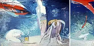 In between the two above-mentioned exhibitions, an exhibition, "New Figurations", was held at the Odesa Literary Museum, in which, young artists from Kyiv were involved.[8] This was the beginning of the integration of the "Odesa Group" into the context of the all-Ukrainian art movement that was a current trend at that time.[9] Vasiliy Ryabchenko's works which were displayed at that exhibition were: "Rejection of Grace" (1988) and "Love – not Love" (1988).