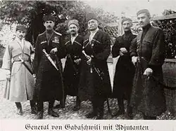 Vasily Gabashvili (Georgian: ვასილ გაბაშვილი), also known by his Russified name Vasily Davidovich Gabayev (Russian: Василий Давидович Габаев) (1853–1933) was a Georgian military commander in the service of the Russian Empire and the Democratic Republic of Georgia.