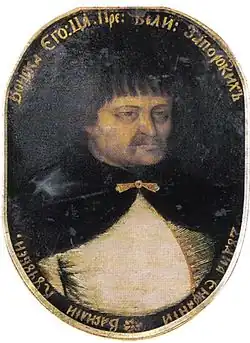 Vasily Leontiyevich Kochubey (Russian: Василий Леонтьевич Кочубей; Ukrainian: Василь Леонтiйович Кочубей, romanized: Vasyl Leontiiovych Kochubei; c. 1640 – 15 July 1708) was a statesman of the Cossack Hetmanate of Crimean Tatar descent. His tenure was characterized by Pro-Moscow policies and was cut short by his execution on Hetman Ivan Mazepa's orders. Kochubey's great-grandson was the eminent Imperial Statesman Viktor Kochubey. The family name is also spelled Kotchoubey (French) and Kotschoubey (German, Almanach de Gotha).