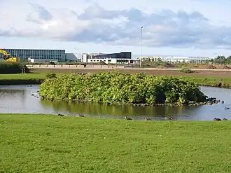 Parts of what is now Vatnsmýri had been used as agricultural fields since the 19th century. In the 20th century, building activity encroached into the area. As the area had been known for its importance for wetland nesting birds, Vatnsmýri was designated a Nature Conservation area in 1981. The lake and parts of the wetland were established as a nature reserve in 1984 by the Reykjavík City Council.[3] A general conservation plan, particularly for activities related to the nesting area of birds, was developed for the period of 1990–2001 by the City Council. A master plan for the period 2001–2024 was subsequently developed with detailing for pond areas, fencing, walkways, and bridges. Consequently, to filling the pond area, the water level in the canals rose by 2.75 metres (9 ft 0 in) with corresponding rise of ground water levels by 3.2 metres (10 ft).[3] In 2012, the Nordic House promoted an exhibit on Vatnsmýrin.[1]